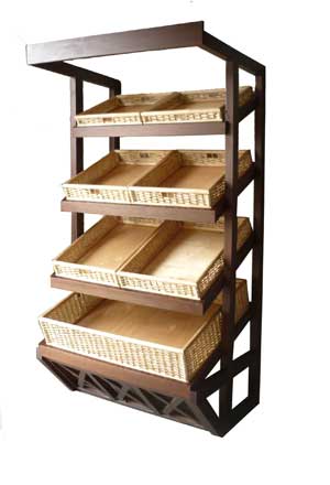 Торговое оборудование, плетеная мебель из лозы, хлебные стеллажи